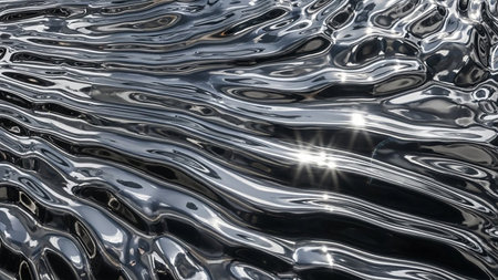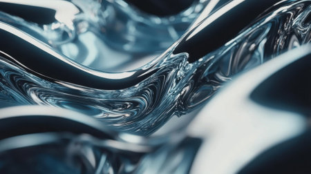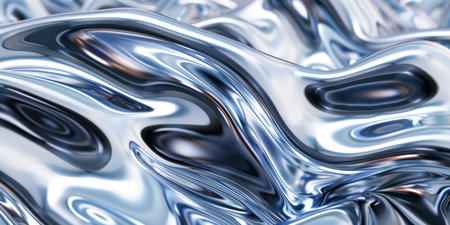 Reflective chrome texture showcasing sleek and shiny surface with captivating fluid patterns