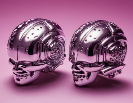 Sleek chrome frames with reflective geometric patterns and details creating a modern futuristic and industrial visual design