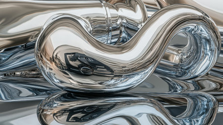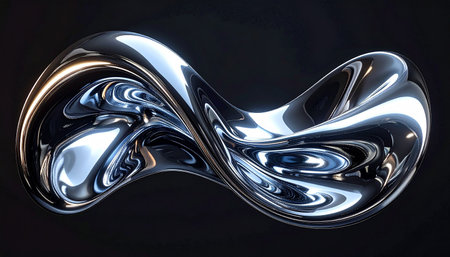 An intricate liquid metal design with smooth swirls and shiny reflections, giving a chic and futuristic vibe