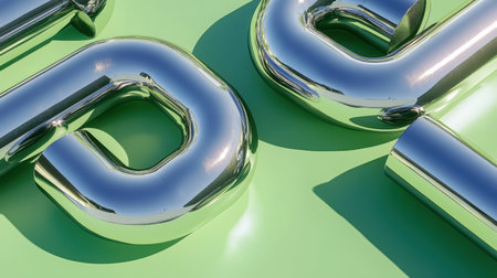Close-up of shiny metallic letters placed against a soft green background. This image captures modern design elements with eye-catching reflections and textures.