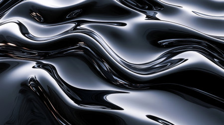 This captivating abstract artwork showcases smooth metallic liquid surfaces, creating a dynamic and elegant visual experience filled with mesmerizing reflections and fluid patterns.