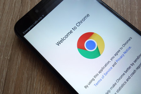 KONSKIE, POLAND - JUNE 17, 2018: Google Chrome app on a new modern smartphone