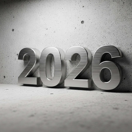 3d render of metallic number 2026 on concrete wall