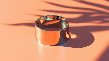 A sleek silver band rests on a coral surface, creating an elegant contrast. The play of light and shadow adds depth, perfect for modern design themes.