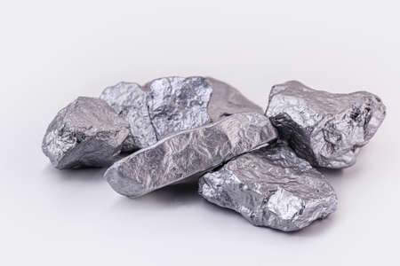 99.995% fine indium isolated on white background, metal and metallic alloy