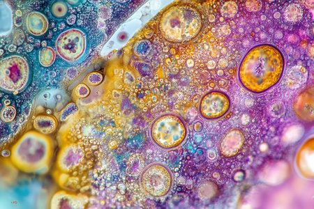 Abstract colorful texture pattern with vibrant bubbles and liquid art in macro design. Multicolor background for creative projects and inspiration.