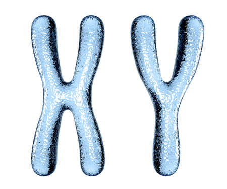 Ice chromosomes. X and Y chromosomes on a white background. 3D illustration