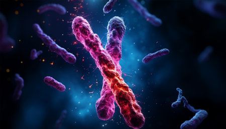 A stunning visualization captures the intricate structure of a human X chromosome, with glowing hotspots indicating active genes. This image symbolizes the forefront of genetic research, biotechnology, and the future of personalized medicine.