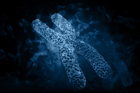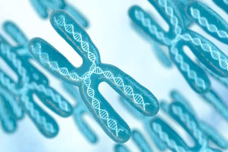 Chromosome structure with DNA. 3D illustration of X Chromosome, Medicine. Medical science and biotechnology background.