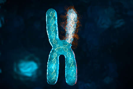 Mutation of chromosome on dark background, 3d rendering. Computer digital drawing.