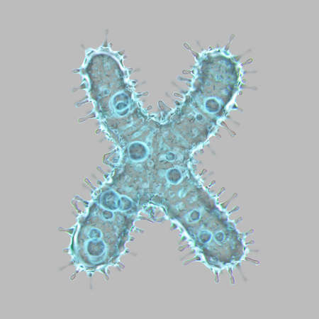 Alphabet made of virus isolated on gray background. Capital letter X. 3d rendering. Covid font 3d