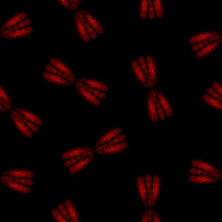 Abstract red virus cells under microscope. Multiplication of bacteria or infection. Scientific background. 3D rendering illustration
