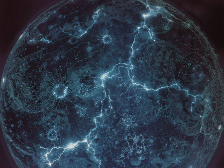 A glowing sphere with electric-like cracks and luminous patterns, resembling a futuristic planet or energy core