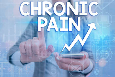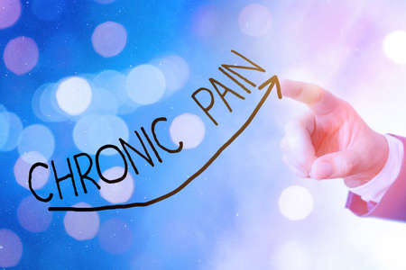 Writing note showing Chronic Pain. Business concept for discomfort that persists or progresses over a long period Arrow symbol going upward showing significant achievement