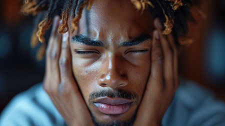 A man feeling strong headache. Close up. People, healthcare and medicine concept.