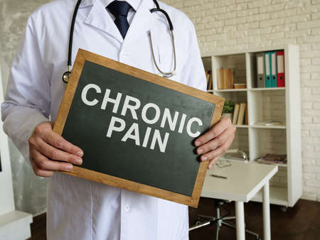 Doctor holds blackboard with words chronic pain.