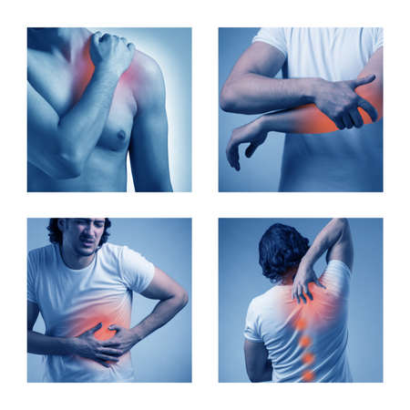 Collage of man suffering from acute pain