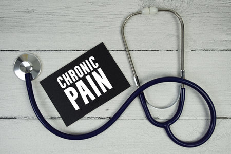 Chronic Pain text with Medical Stethoscope on wooden background