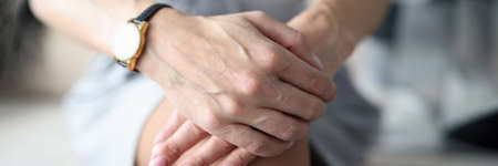 Close up young woman wrist pain, health care concept
