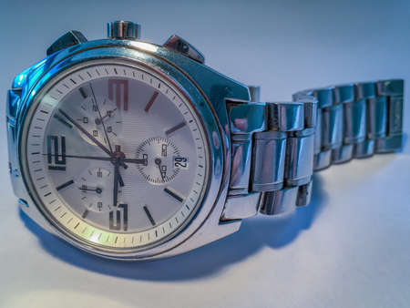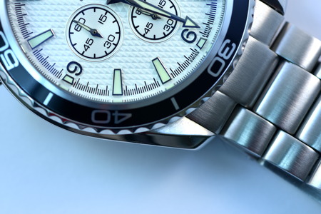 Beautiful Man watch with white background. Close up photo.