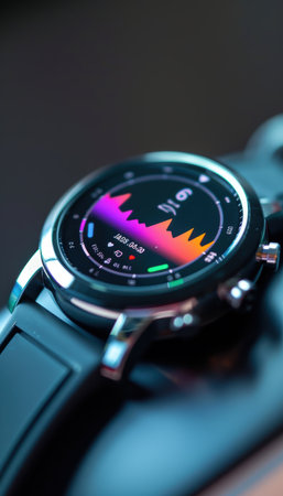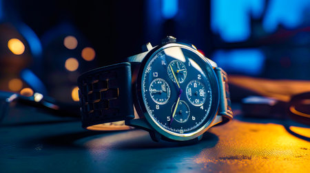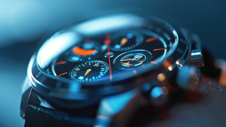 Stunning close-up image of a modern analog watch showcasing intricate designs, vibrant colors, and a stylish leather strap, perfect for fashion or luxury-related themes.