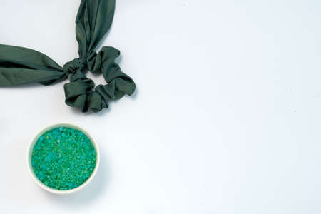 Colorful elastic rings. Girl elastic fashion band. hair scrunchy. A scrunchie is a fabric covered rubber band hair used to fasten long hair.