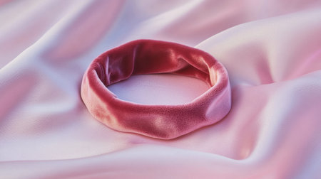 This image captures an elegant pink velvet hairband resting on soft satin fabric, creating a stylish and chic display perfect for fashion-related themes.