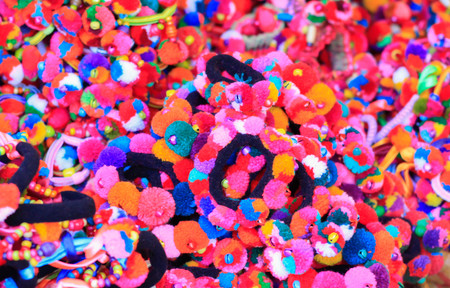 Multi colored wool ball decoration symbolizes creativity and homemade craft product generated by artificial intelligence