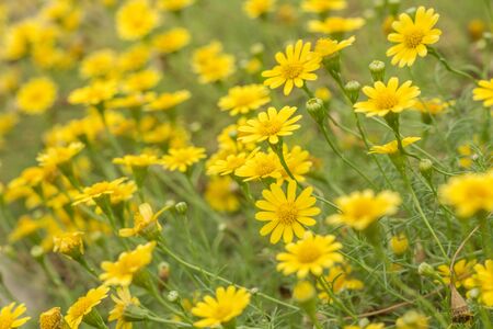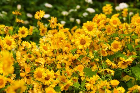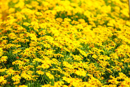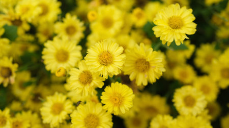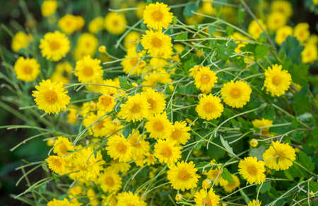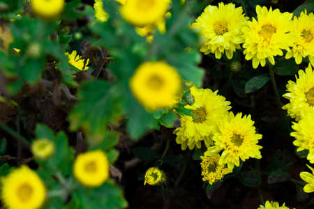 Top view yellow chrysanthemum flowers blooming in the field. ( selective focus)