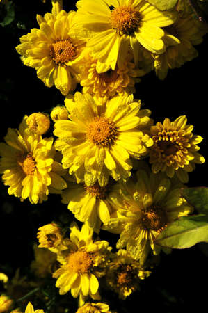 Beautiful yellow chrysanthemum flowers on a dark background. Selective focus.