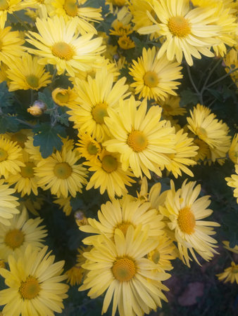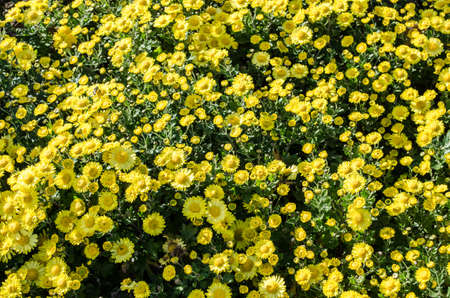 beautiful bushes of yellow chrysanthemum flowers close-up