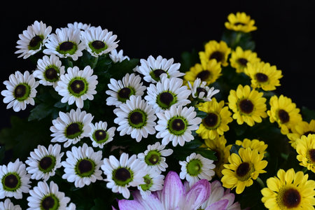 Bouquet of colorful chrysanthemums on black background