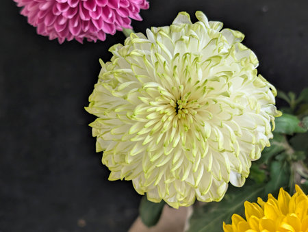 Chrysanthemum very pretty colorful garden flower close up in the sunshine