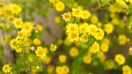 Yellow chrysanthemum flowers, chrysanthemum in the garden. Blurry flower for background, colorful plants