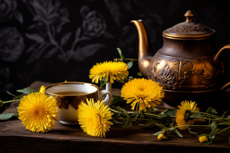 Medicinal Tea dandelion flowers. Spring floral. Generate Ai