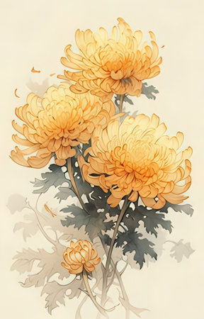 chrysanthemum flowers on a white background, watercolor painting