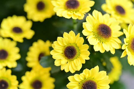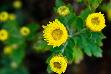 Beautiful yellow Japan Chrysanthemums in autumn. With selective focus. Close-up