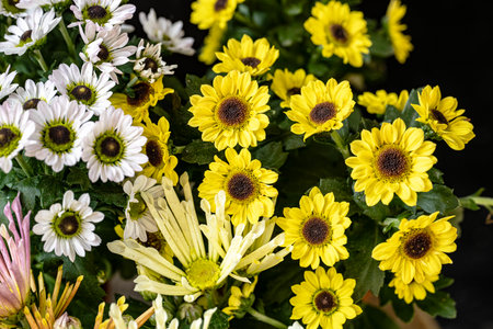 Rich choic of colorful chrysanthemum. View from above. Natural background. Selective focus.