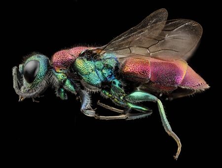 Bright colors Chrysura species Macro specimen, Flying insect, side