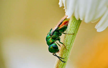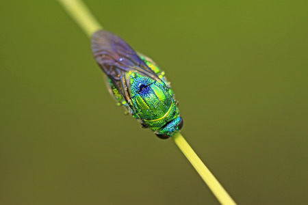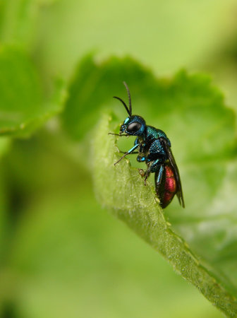 Close up of a chrysis spec., A cuckoo wasp. Narrow field of depth.