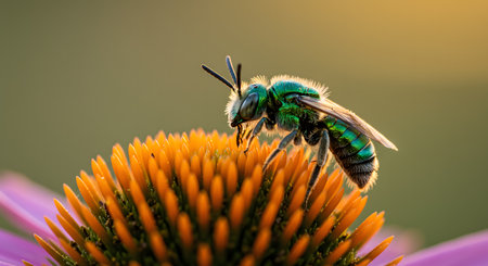 Vibrant Metallic Green Sweat Bee on a Purple Coneflower