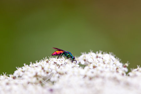 A ruby-tailed wasps, Chrysis ignita, on a flower.