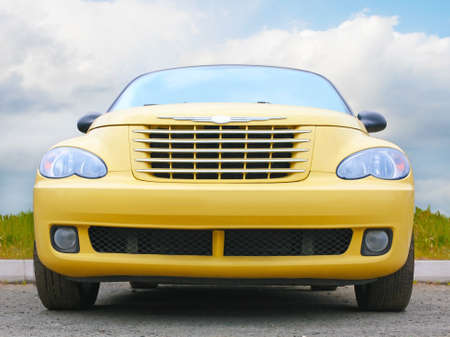 Headlight yellow muscle car - front view