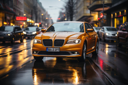 APP Taxi Passing Passes on a busy urban scene., generative AI