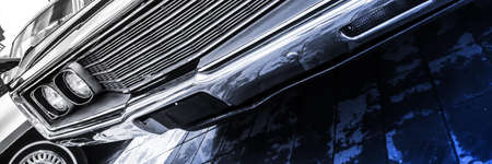 Vintage american muscle car. front bumper