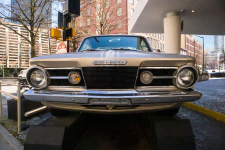 Atlanta, Ga USA - 03 07 20: Downtown Atlanta Georgia plymouth car on display old car front mint
