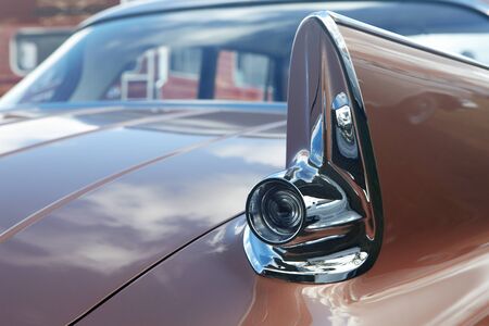 Detail of the headlight of a classic american car.