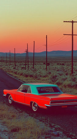 Classic Car Desert Road Trip: Sunset Drive Nostalgia