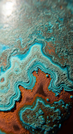 Stunning Close Up of Turquoise and Copper Mineral Textures Showcasing Natural Beauty and Geological Formations in Vibrant Colors. Generative AI