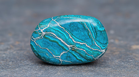 A stunning turquoise stone rests on a dark water surface, showcasing its vibrant color and intricate texture. Perfect for nature-themed designs or wellness concepts.
